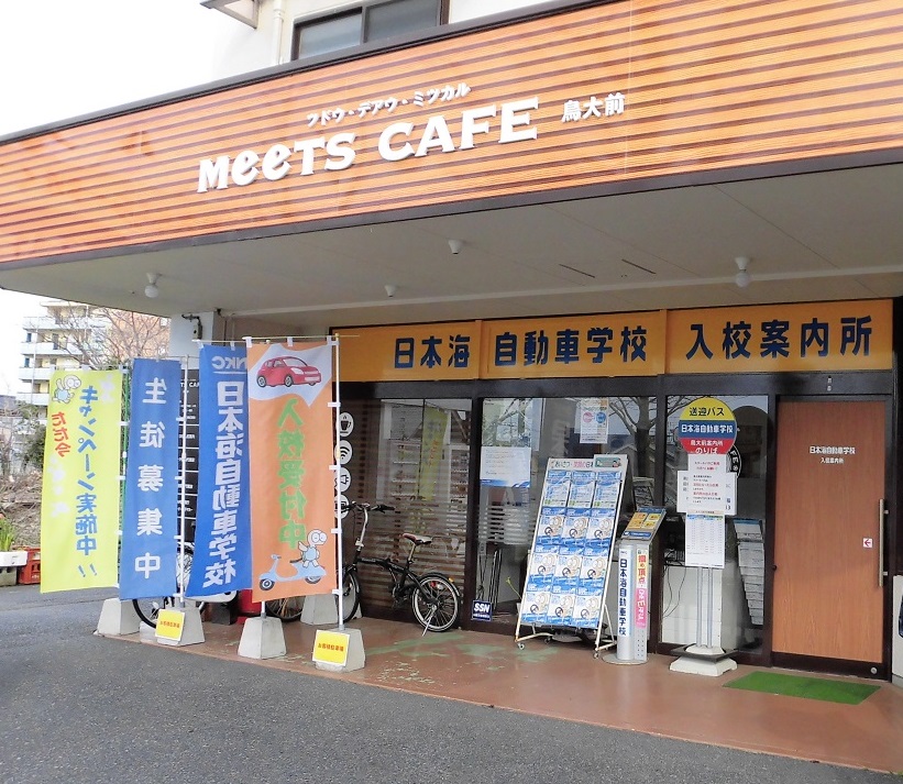 鳥取大学前日本海自動車学校案内所(ミーツカフェ)にてneedレンタカーが取り次ぎ出来るようになりました。